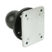 - 2.5 in. round plate with a C-size 1.5 in. rubber ball connects to the included 2.10 x 2.60 in. steel backing plate that connects to RAM® components containing the universal AMPS hole pattern